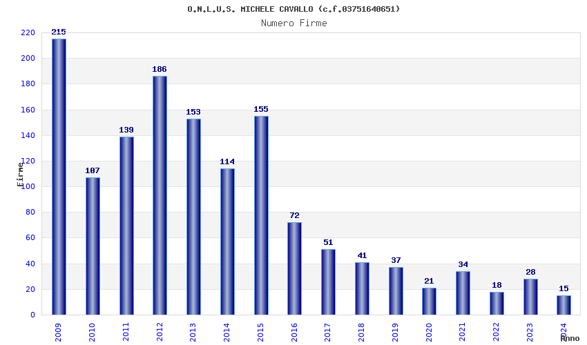 | Anno | Firme | Importi | Media | Naz. | Reg. | Prov. | Comu. |