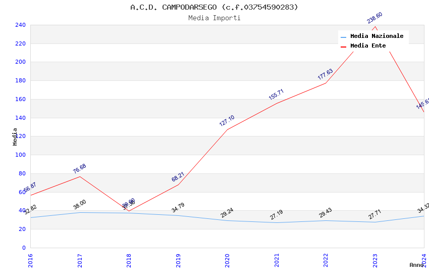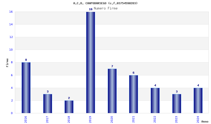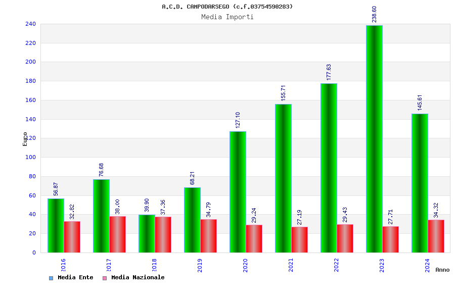 | Anno | Firme | Importi | Media | Naz. | Reg. | Prov. | Comu. |