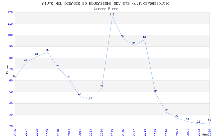 | 2015 | 116 | 6.300,51 | 54,31 | 8.447 | 2.002 | 880 | 6 |