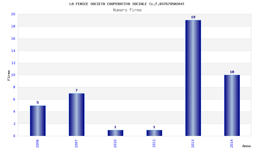 | Anno | Firme | Importi | Media | Naz. | Reg. | Prov. | Comu. |