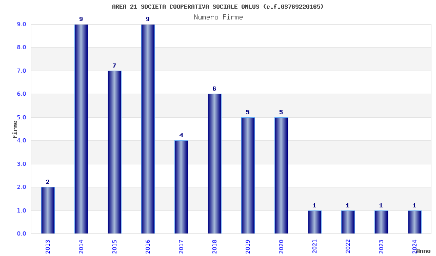 | Anno | Firme | Importi | Media | Naz. | Reg. | Prov. | Comu. |