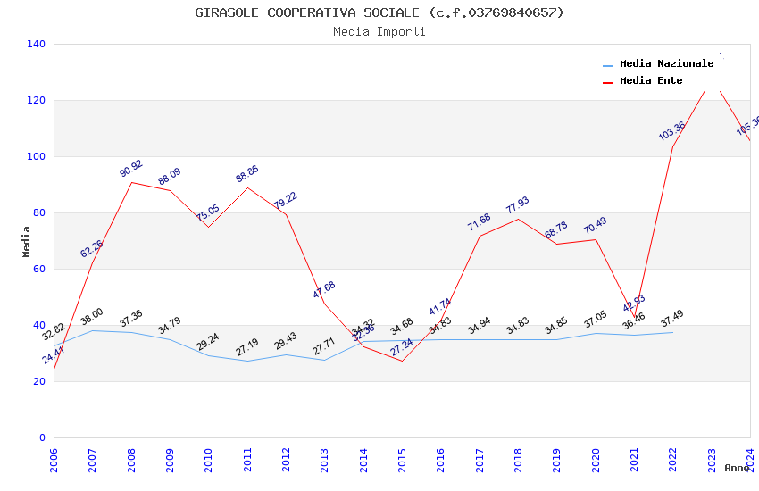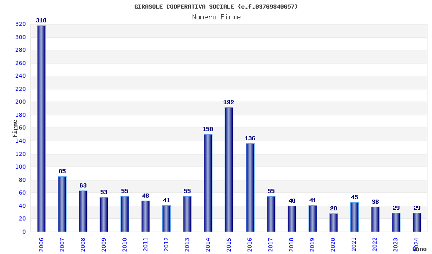 | Anno | Firme | Importi | Media | Naz. | Reg. | Prov. | Comu. |