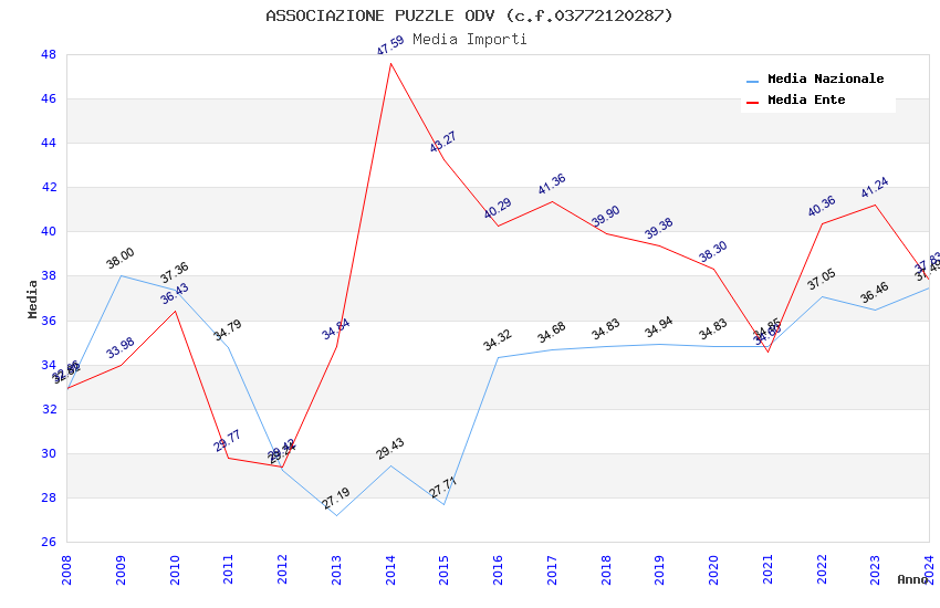 | Anno | Firme | Importi | Media | Naz. | Reg. | Prov. | Comu. |