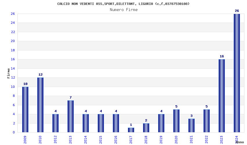 | Anno | Firme | Importi | Media | Naz. | Reg. | Prov. | Comu. |