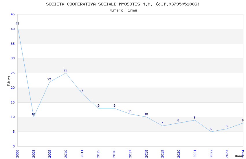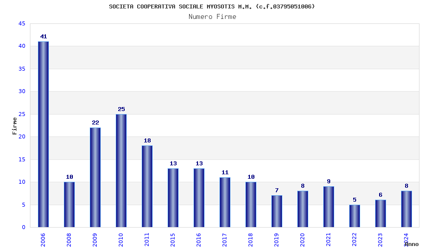 | Anno | Firme | Importi | Media | Naz. | Reg. | Prov. | Comu. |