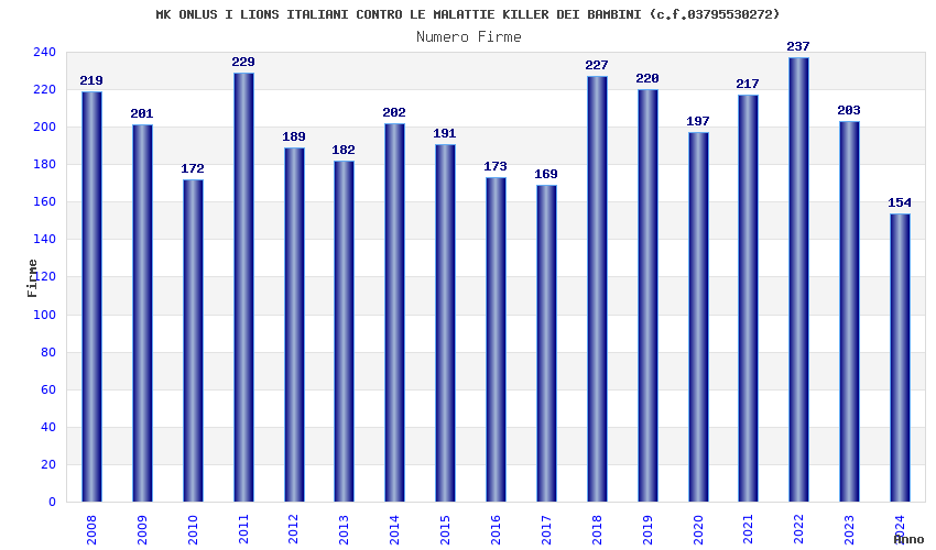 | Anno | Firme | Importi | Media | Naz. | Reg. | Prov. | Comu. |