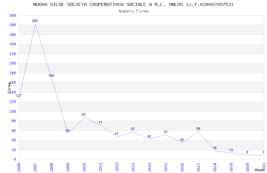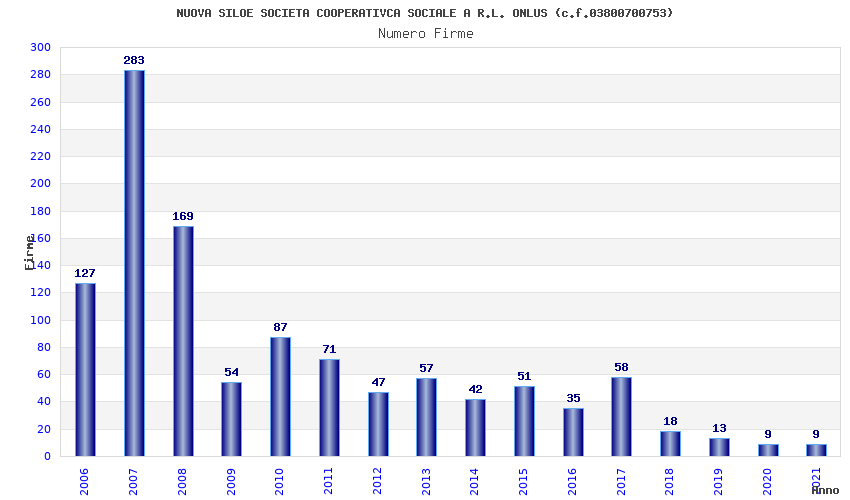 | Anno | Firme | Importi | Media | Naz. | Reg. | Prov. | Comu. |