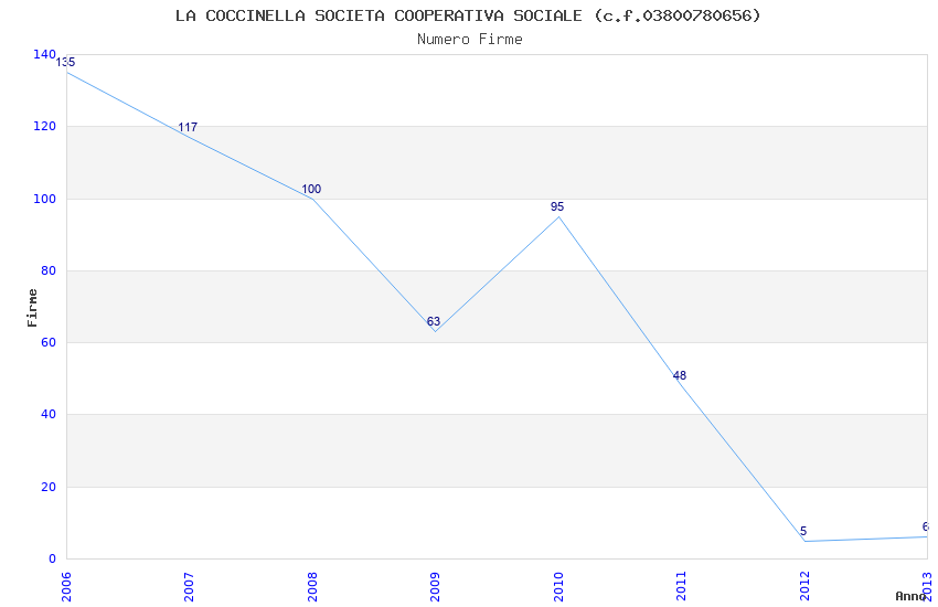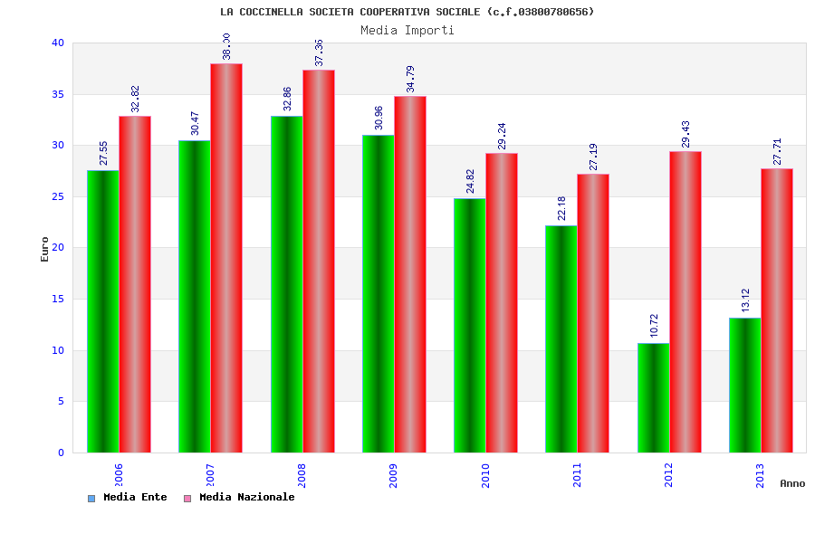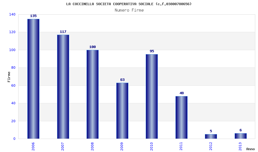 | Anno | Firme | Importi | Media | Naz. | Reg. | Prov. | Comu. |