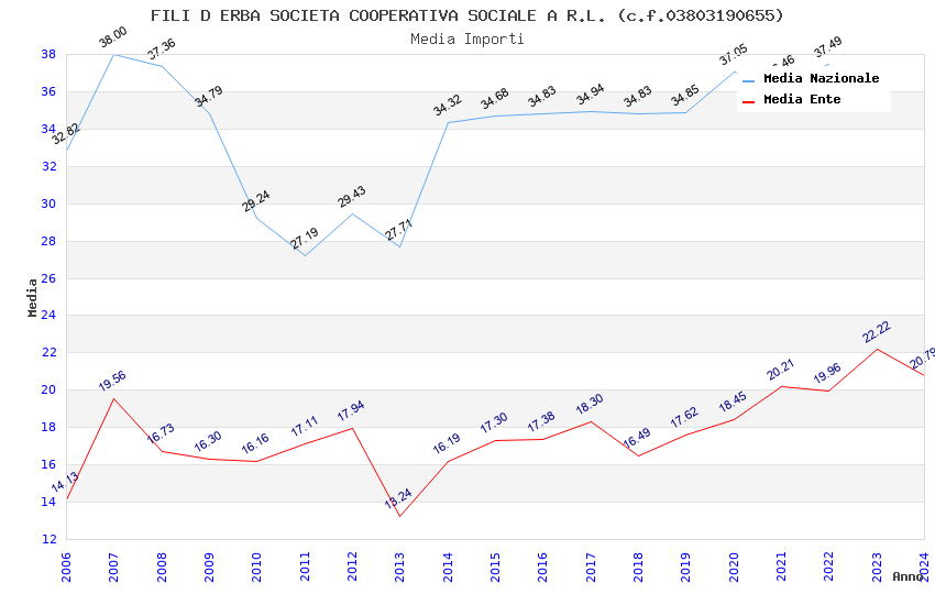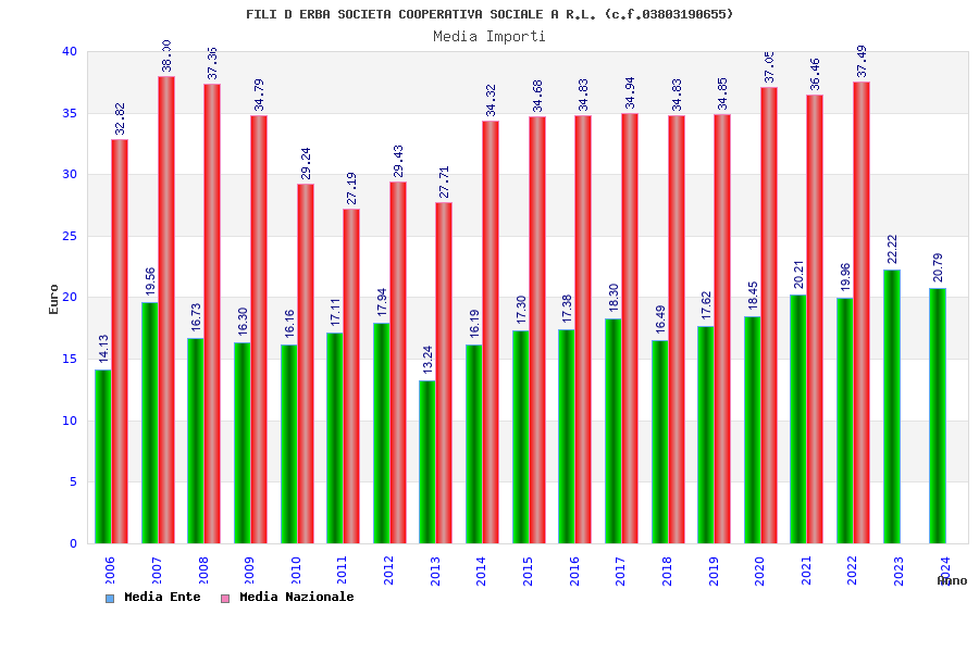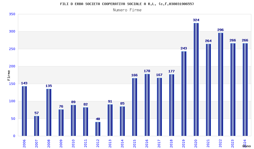 | Anno | Firme | Importi | Media | Naz. | Reg. | Prov. | Comu. |