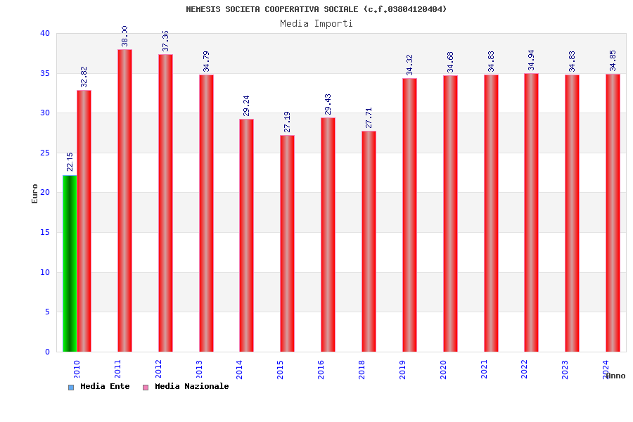 | Anno | Firme | Importi | Media | Naz. | Reg. | Prov. | Comu. |