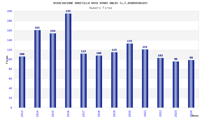 | Anno | Firme | Importi | Media | Naz. | Reg. | Prov. | Comu. |