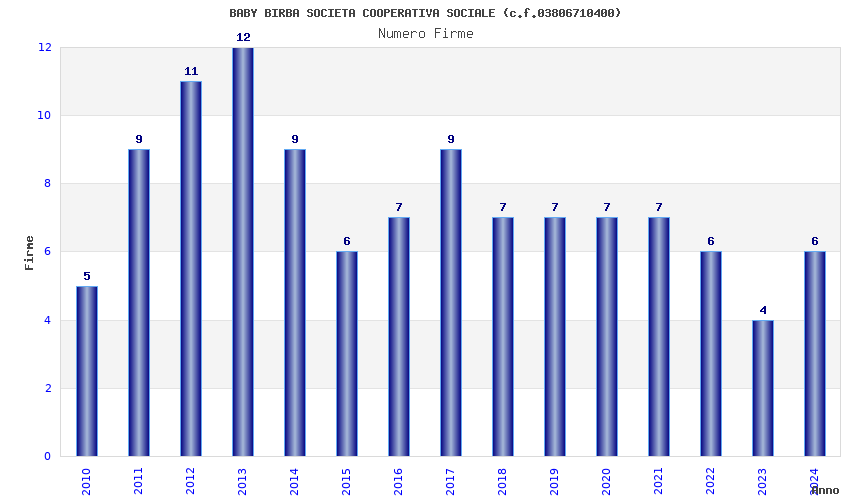 | Anno | Firme | Importi | Media | Naz. | Reg. | Prov. | Comu. |