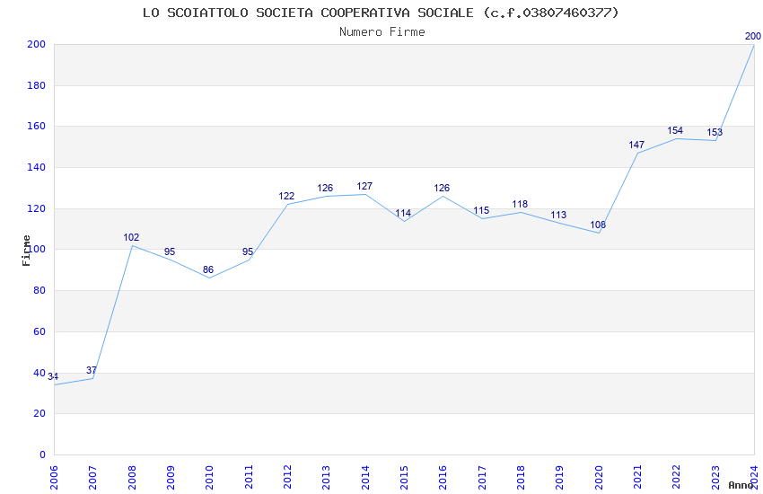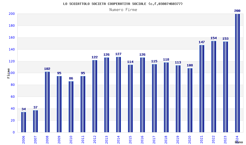 | Anno | Firme | Importi | Media | Naz. | Reg. | Prov. | Comu. |