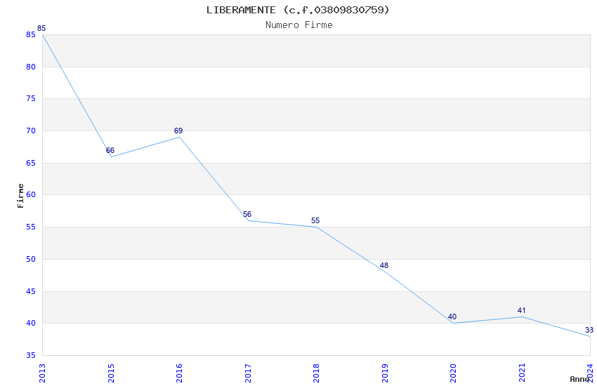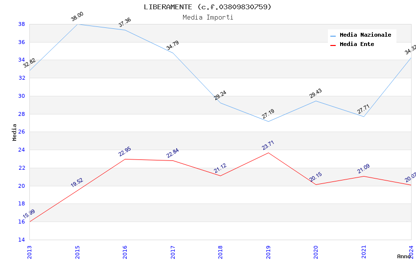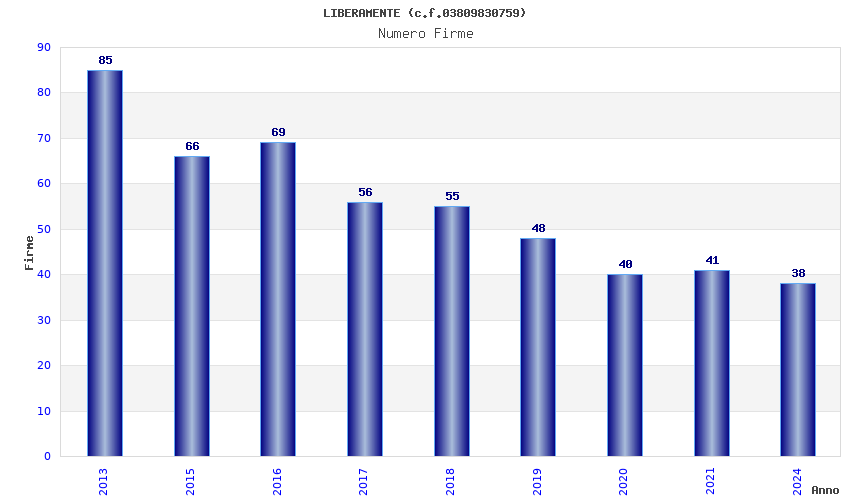| Anno | Firme | Importi | Media | Naz. | Reg. | Prov. | Comu. |