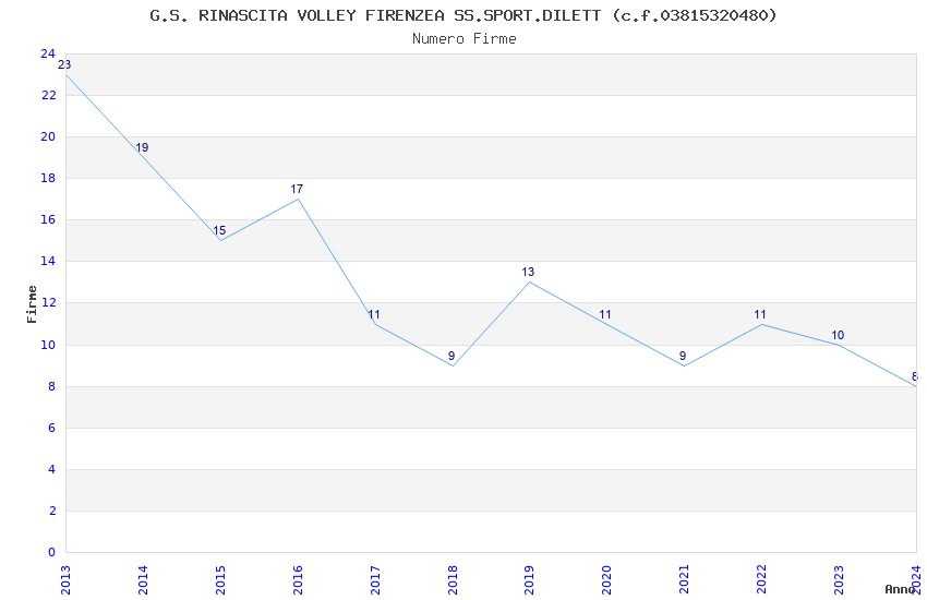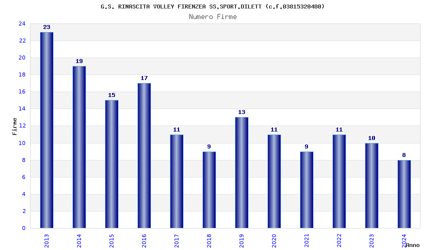 | Anno | Firme | Importi | Media | Naz. | Reg. | Prov. | Comu. |
