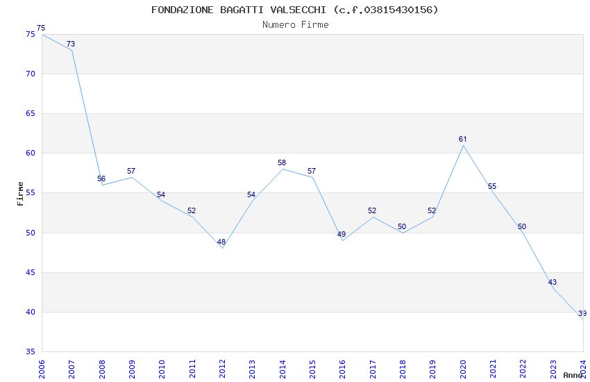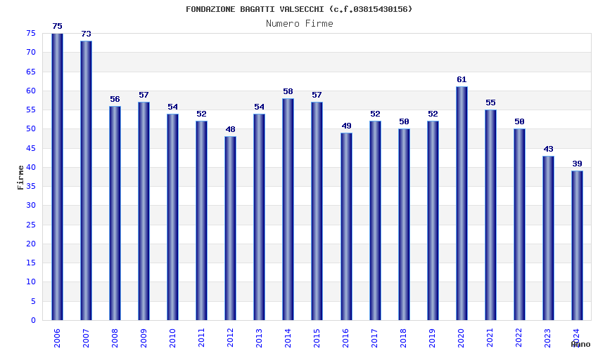 | Anno | Firme | Importi | Media | Naz. | Reg. | Prov. | Comu. |