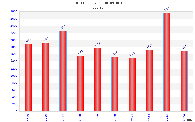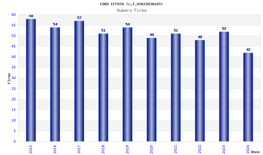 | Anno | Firme | Importi | Media | Naz. | Reg. | Prov. | Comu. |