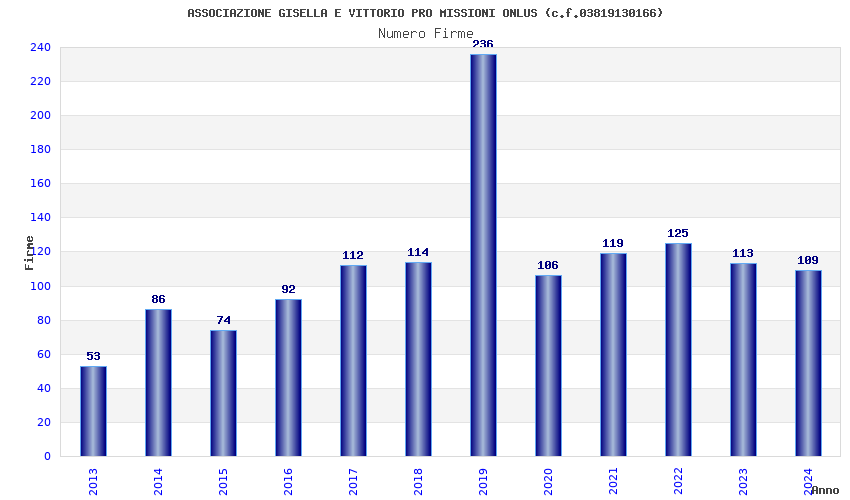| Anno | Firme | Importi | Media | Naz. | Reg. | Prov. | Comu. |