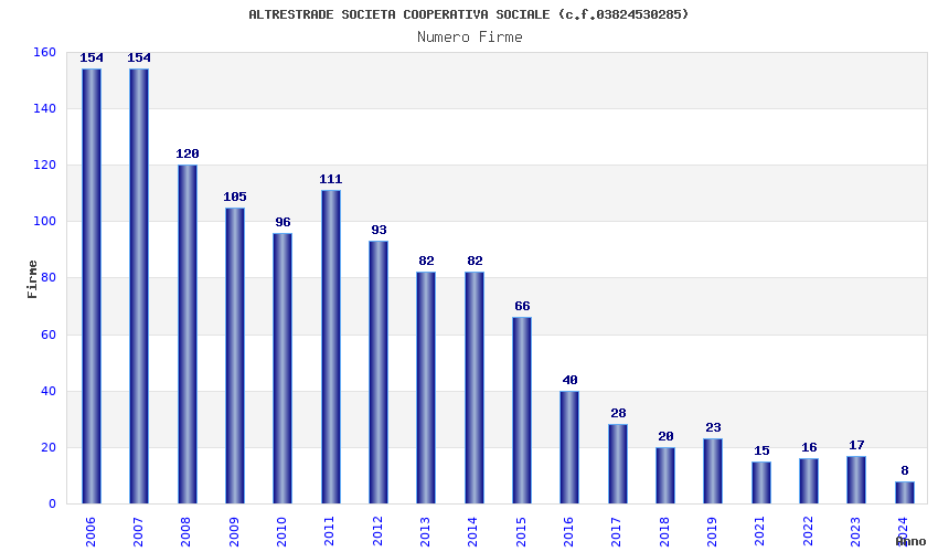 | 2007 | 154 | 4.005,22 | 26,01 | 8.681 | 735 | 173 | 104 |
