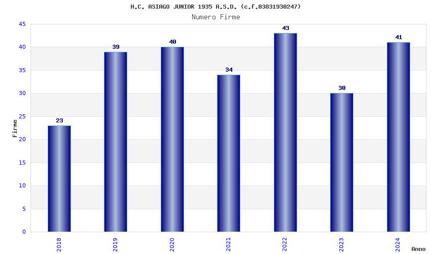 | Anno | Firme | Importi | Media | Naz. | Reg. | Prov. | Comu. |