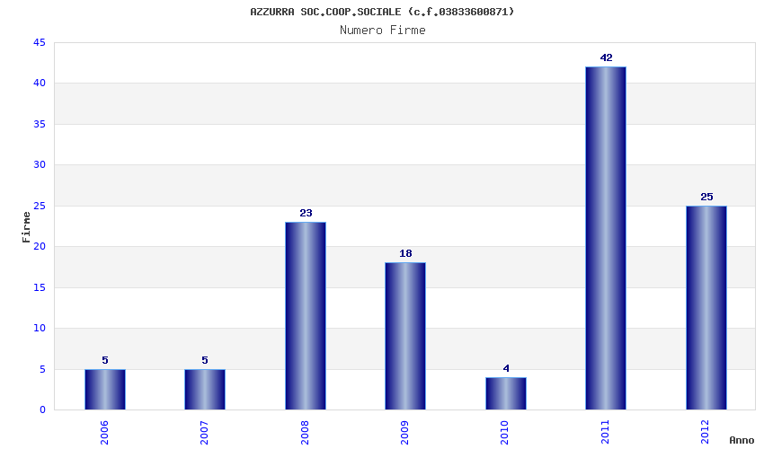 | Anno | Firme | Importi | Media | Naz. | Reg. | Prov. | Comu. |