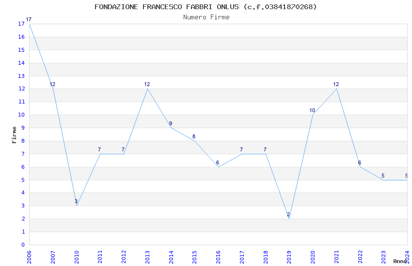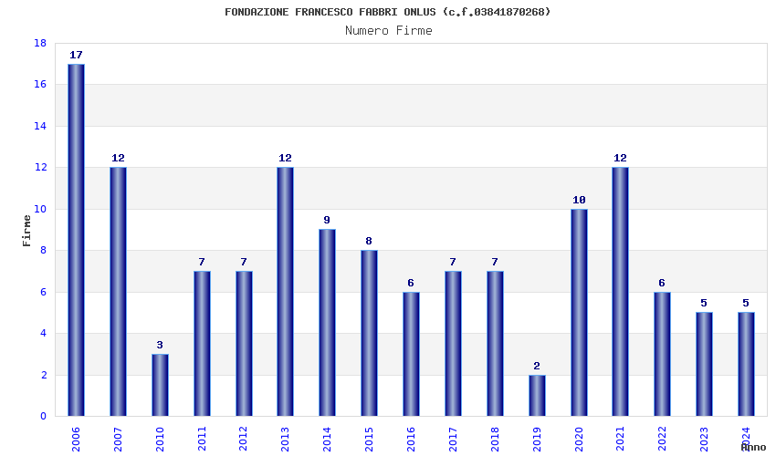 | Anno | Firme | Importi | Media | Naz. | Reg. | Prov. | Comu. |