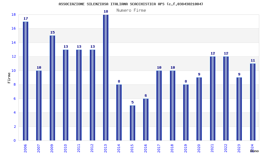 | Anno | Firme | Importi | Media | Naz. | Reg. | Prov. | Comu. |