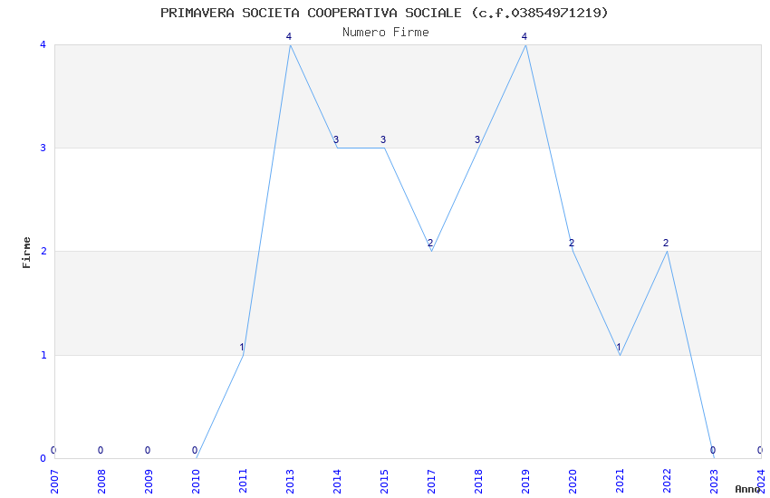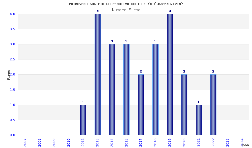 | Anno | Firme | Importi | Media | Naz. | Reg. | Prov. | Comu. |