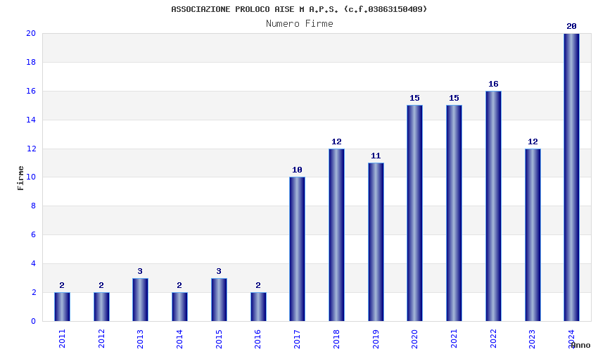 | Anno | Firme | Importi | Media | Naz. | Reg. | Prov. | Comu. |