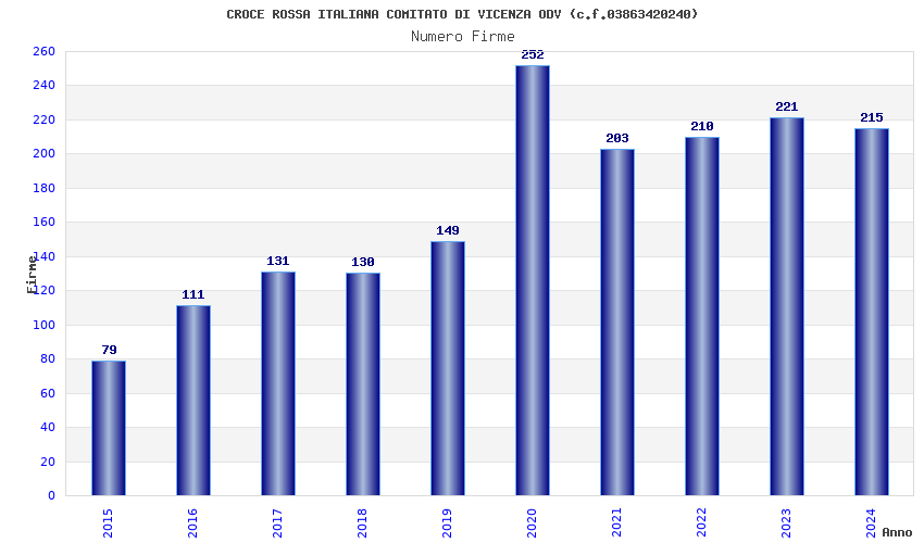 | Anno | Firme | Importi | Media | Naz. | Reg. | Prov. | Comu. |