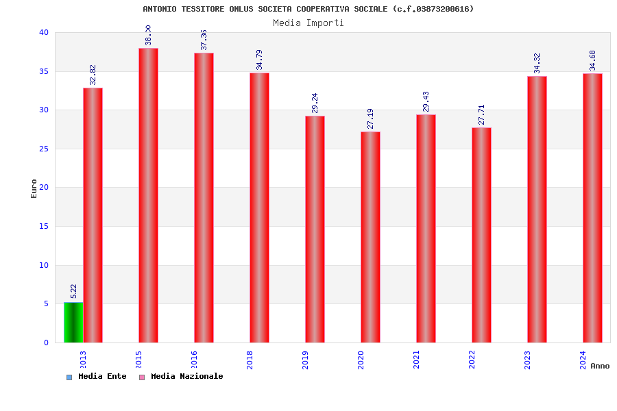 | Anno | Firme | Importi | Media | Naz. | Reg. | Prov. | Comu. |