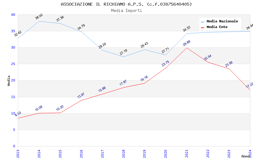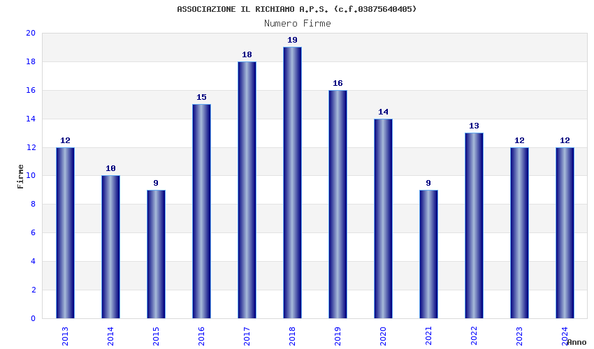 | Anno | Firme | Importi | Media | Naz. | Reg. | Prov. | Comu. |