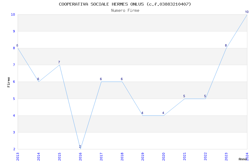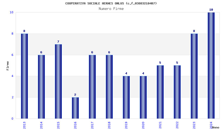 | Anno | Firme | Importi | Media | Naz. | Reg. | Prov. | Comu. |