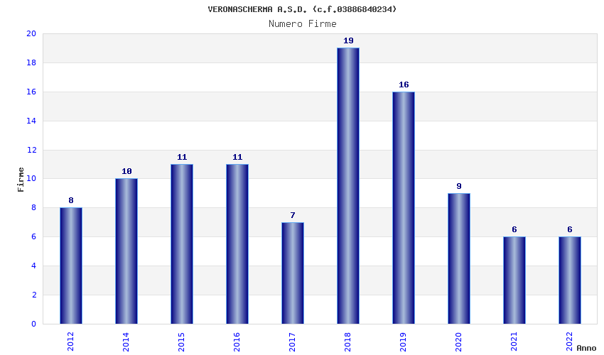 | Anno | Firme | Importi | Media | Naz. | Reg. | Prov. | Comu. |