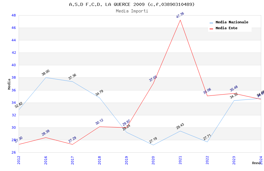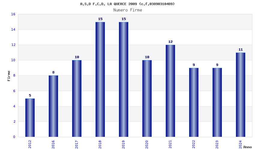 | Anno | Firme | Importi | Media | Naz. | Reg. | Prov. | Comu. |