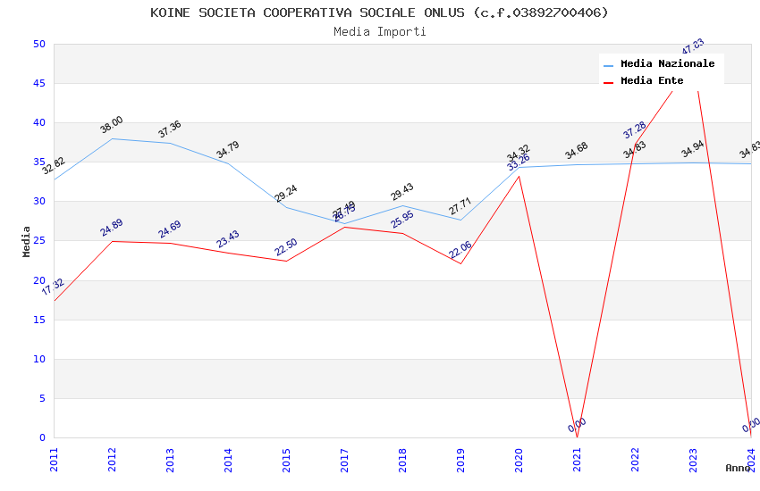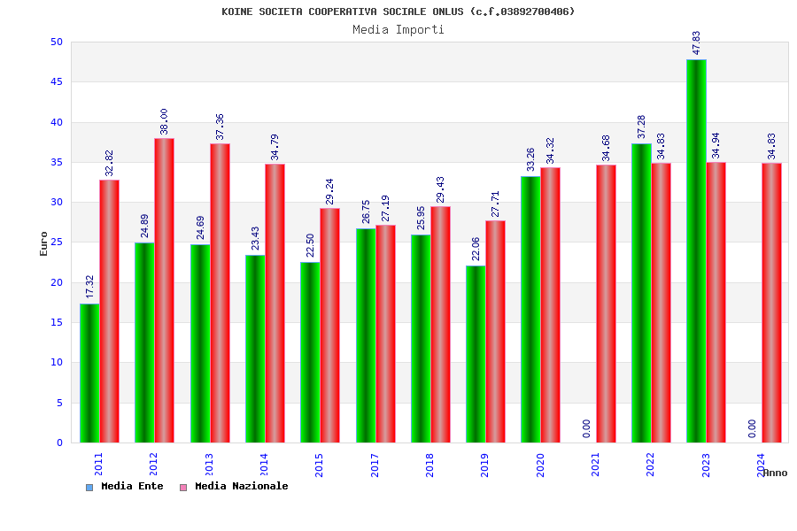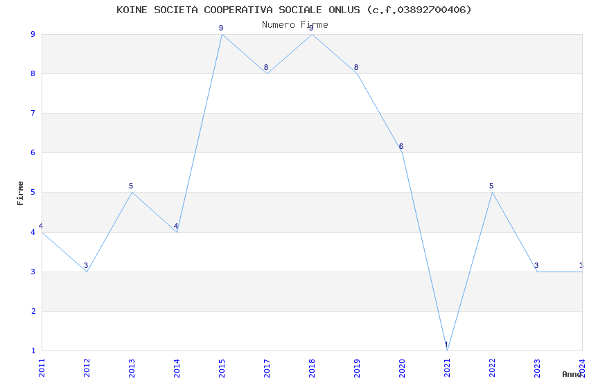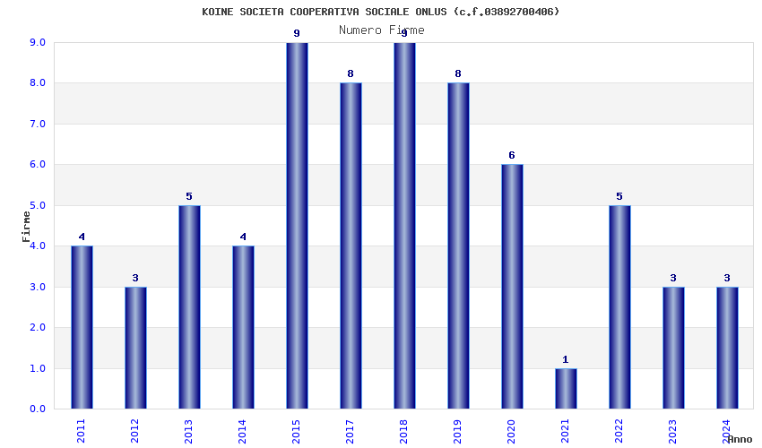 | Anno | Firme | Importi | Media | Naz. | Reg. | Prov. | Comu. |
