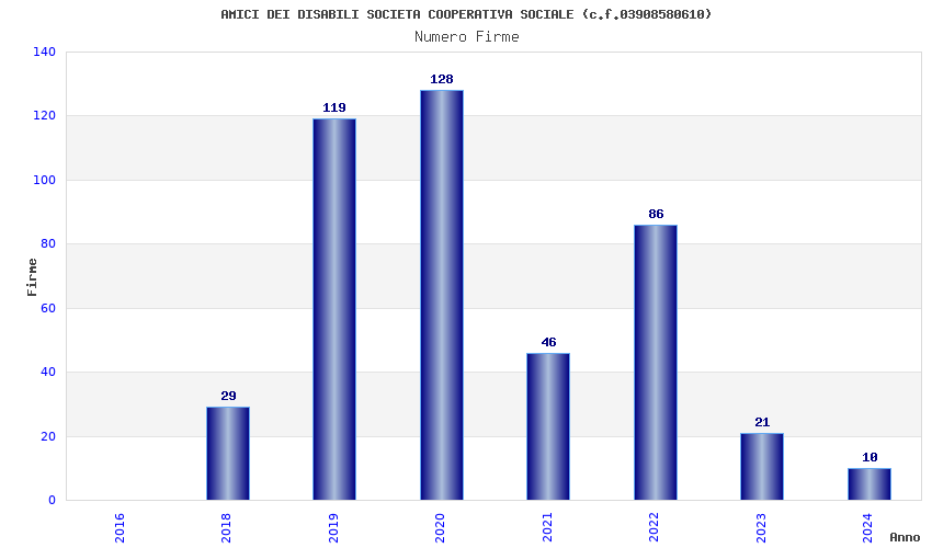 | Anno | Firme | Importi | Media | Naz. | Reg. | Prov. | Comu. |