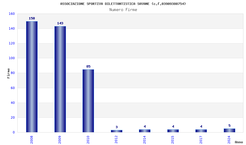 | Anno | Firme | Importi | Media | Naz. | Reg. | Prov. | Comu. |