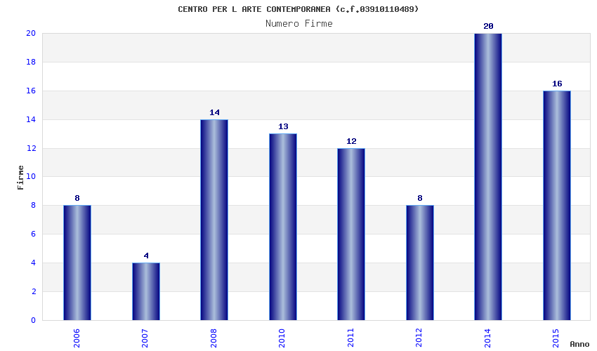 | Anno | Firme | Importi | Media | Naz. | Reg. | Prov. | Comu. |
