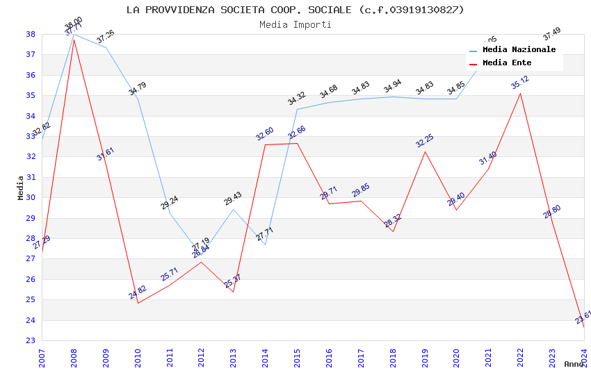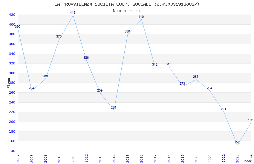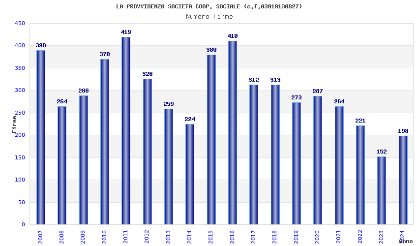| Anno | Firme | Importi | Media | Naz. | Reg. | Prov. | Comu. |