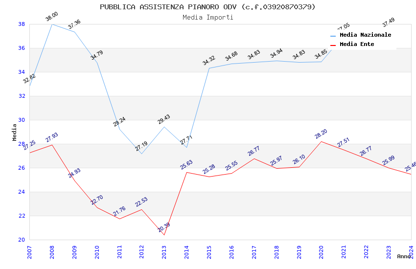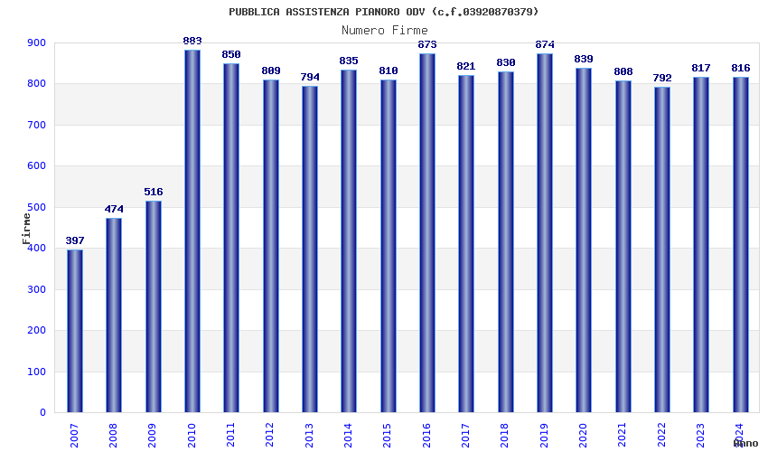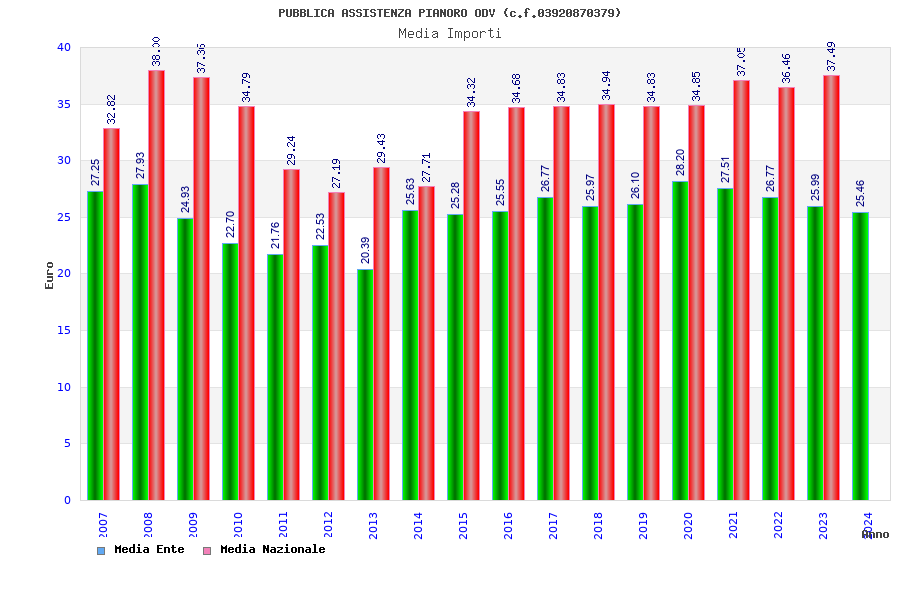 | Anno | Firme | Importi | Media | Naz. | Reg. | Prov. | Comu. |