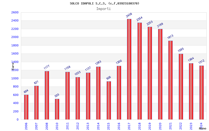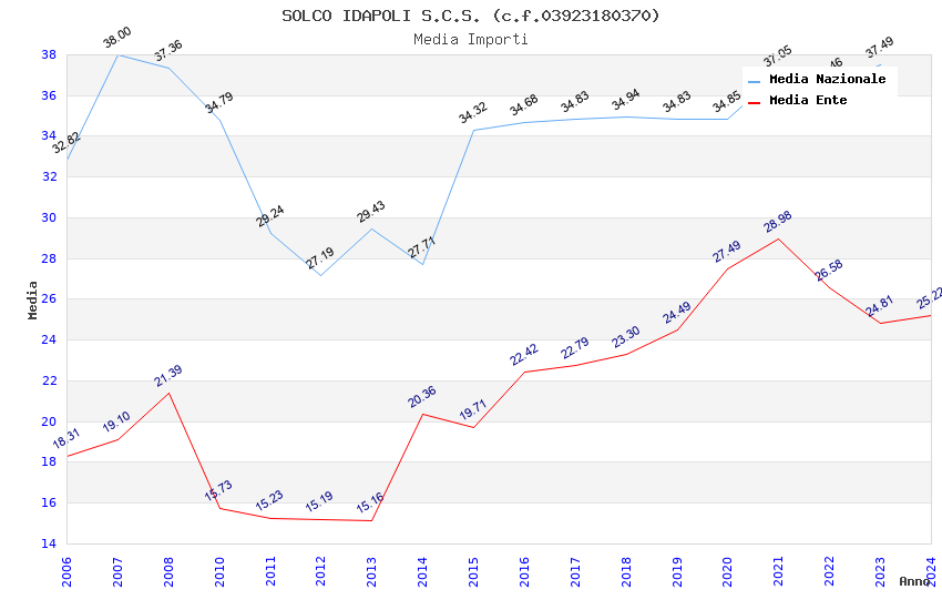 | Anno | Firme | Importi | Media | Naz. | Reg. | Prov. | Comu. |