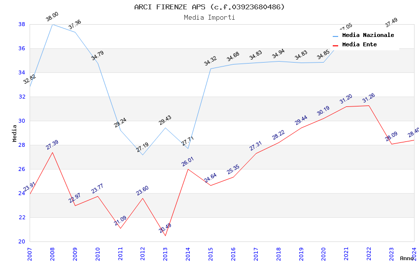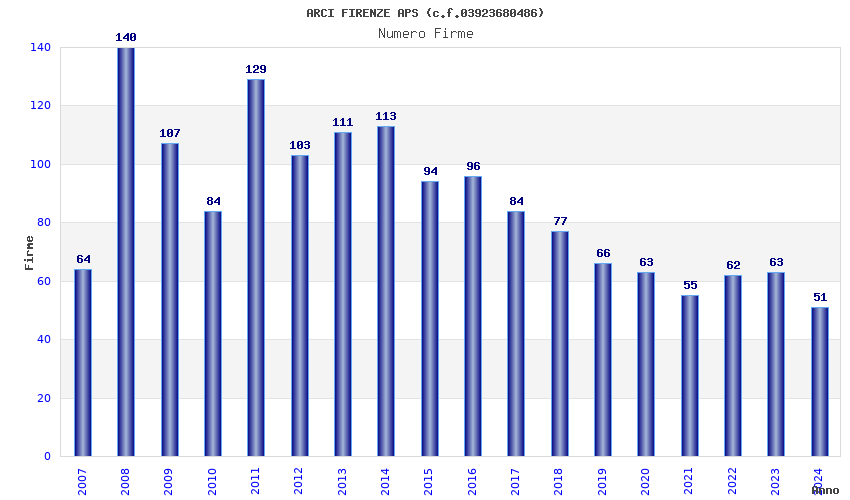 | Anno | Firme | Importi | Media | Naz. | Reg. | Prov. | Comu. |