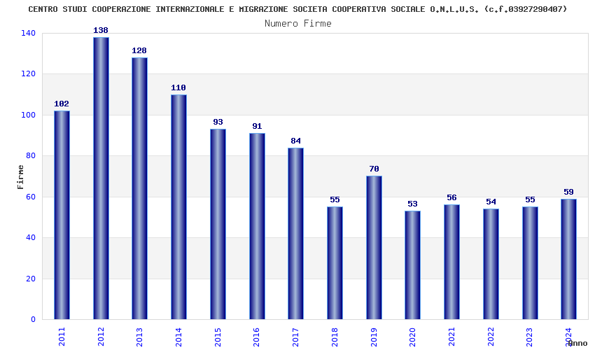 | Anno | Firme | Importi | Media | Naz. | Reg. | Prov. | Comu. |