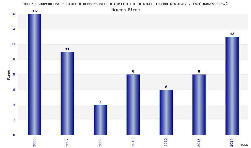 | Anno | Firme | Importi | Media | Naz. | Reg. | Prov. | Comu. |