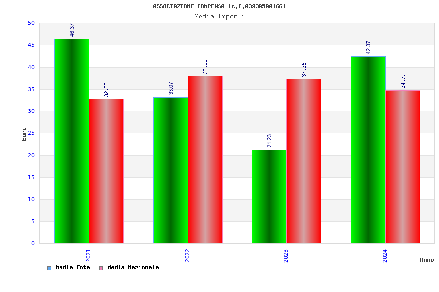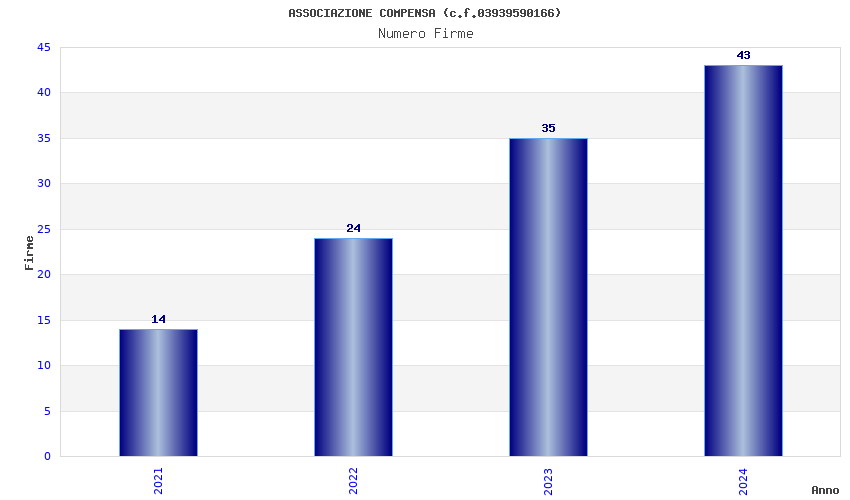 | Anno | Firme | Importi | Media | Naz. | Reg. | Prov. | Comu. |