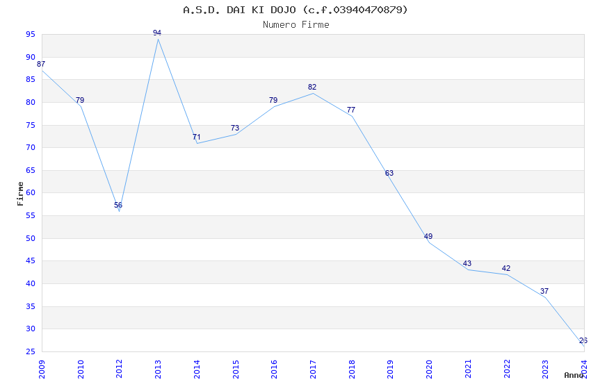 | 2009 | 87 | 3.920,67 | 45,07 | 10.699 | 617 | 109 | 53 |