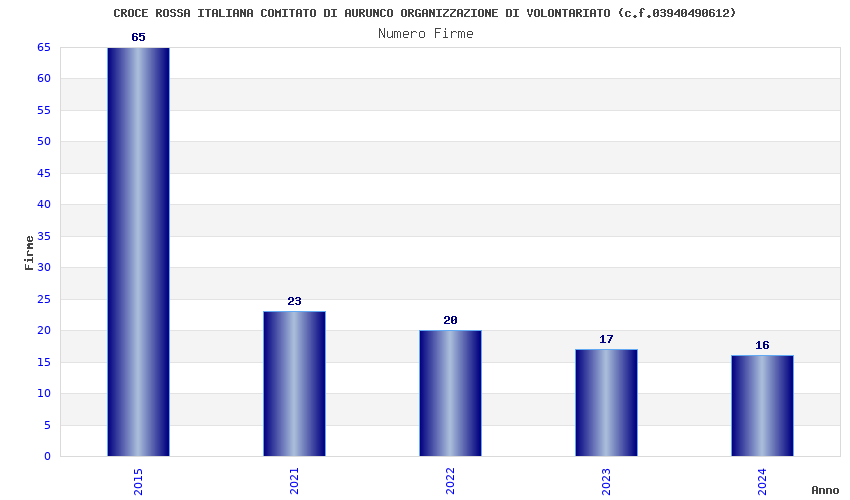 | Anno | Firme | Importi | Media | Naz. | Reg. | Prov. | Comu. |