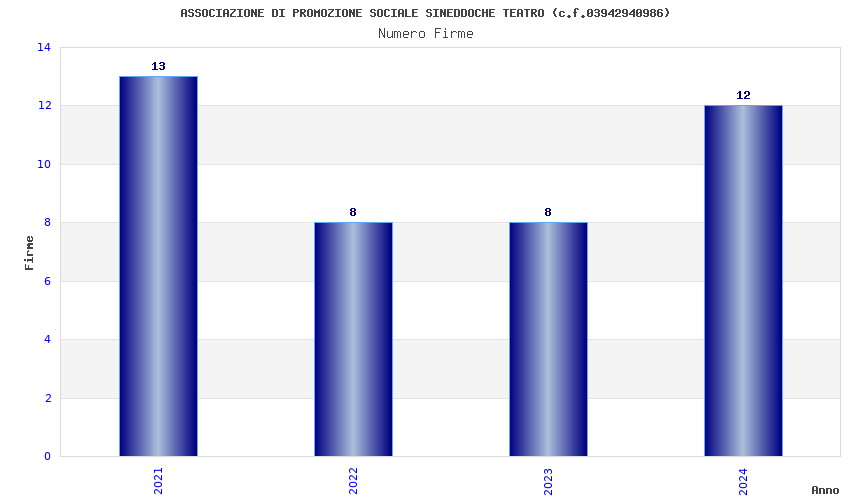 | Anno | Firme | Importi | Media | Naz. | Reg. | Prov. | Comu. |