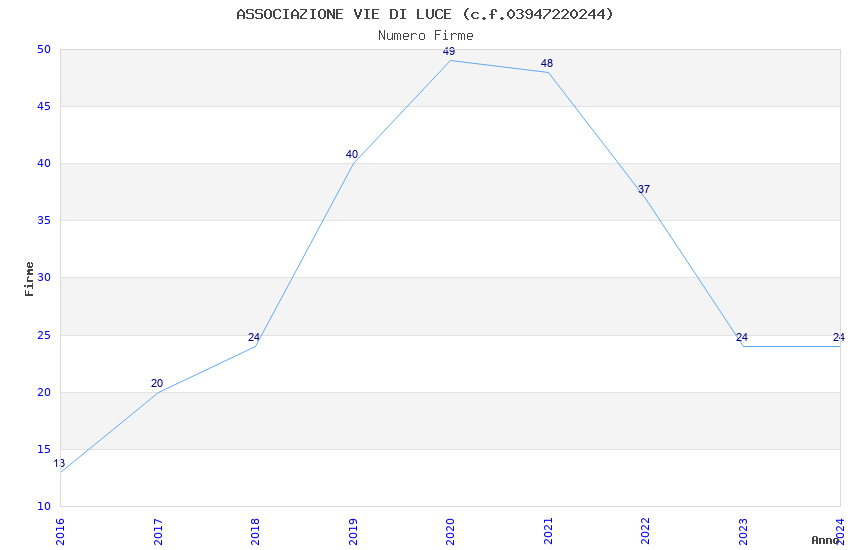 | 2020 | 49 | 2.190,36 | 44,70 | 22.910 | 2.135 | 385 | 5 |